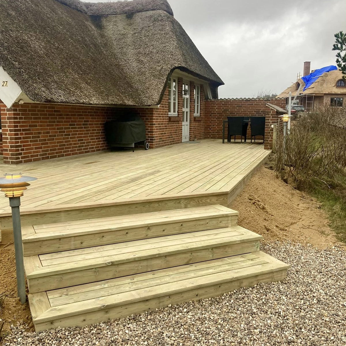 Drømmer du om at få bygget en dejlig træterrasse i din have? Så er du velkommen til at kontakte Tømrerfirmaet West ApS for professionel hjælp. Vi har stor erfaring inden for opbygning af træterrasse, og derfor kan du trygt lade os være din samarbejdspartner. Vi står primært til rådighed i og omkring Nørre Nebel, Varde, Blåvand, Henne, Hvidesande og resten af Vestjylland.