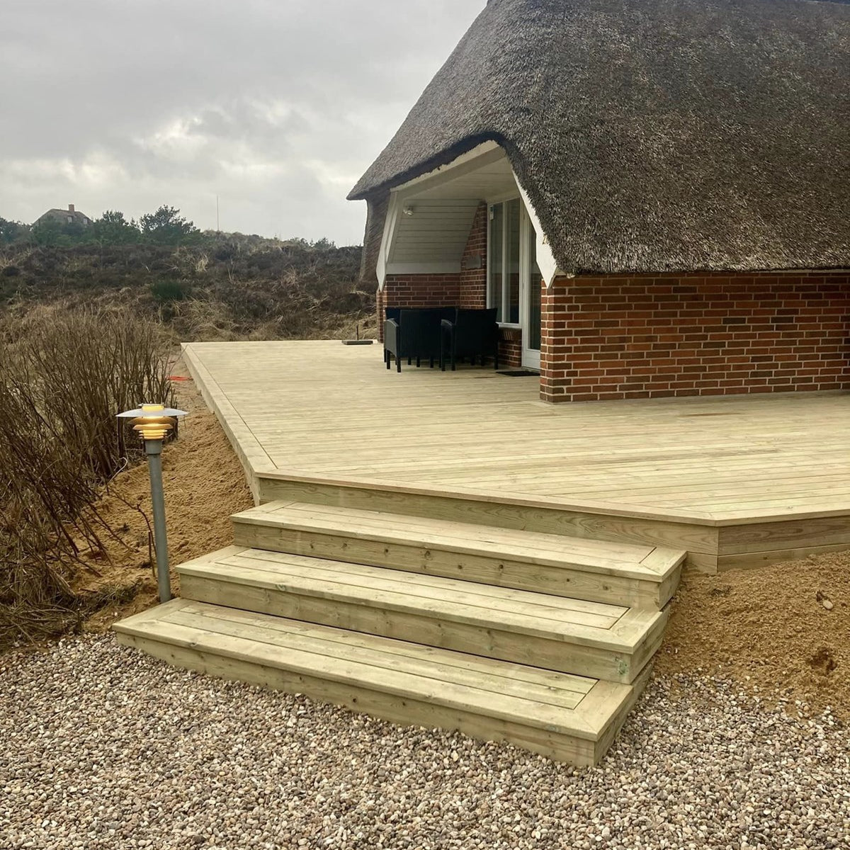 En træterrasse kan udformes på mange forskellige måder, afhængigt af lige netop dine individuelle behov. Den kan være overdækket eller åben. Den kan være hævet fra jorden eller ikke. Vi står klar til at bygge en træterrasse lige efter dine ønsker og behov, uanset hvad disse er. Tøv derfor ikke med at ringe eller skrive til os for kompetent hjælp.